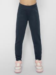 Брюки для девочки на эластичном поясе со шнурком, сбоку-полукруглые карманы с цветной отделкой, по низу на манжете.