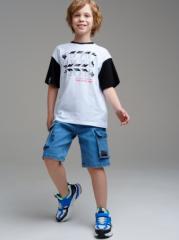 Описание: Шорты джинсовые прямого силуэта для мальчика., Модель дополнена внутренней утяжкой. Накладные карманы с клапанами на боковых швах. Состав: 70% хлопок, 28% полиэстер, 2% эластан