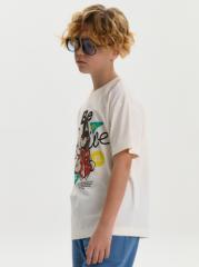 Наименование:Футболка для мальчиков Молочный(28) Цена: 318 руб. Описание: Футболка для мальчика прямого кроя умеренного объема. Уменьшена длина по сравнению с футболками Осень 25. Вырез горловины обработан эластичной рибаной — она прекрасно держит форму, не растягивается, при этом ребёнку удобно надевать и снимать футболку. Футболка с принтом и надписями. Состав: 100%хлопок Возрастная группа: Kids Сезон: Весна Год: 2026 Пол: Мальчики