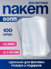 Наименование: 100 шт. Пакет фасовочный БОПП, прозрачный, 15×20 см, 25 мкм