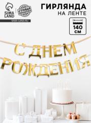 Наименование: Гирлянда на ленте, металлик «С ДР» золотой, длина 140 см