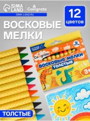 Муля Мелки восковые Calligrata, цветные, 12 цветов, утолщённые, 93×11 мм 80 Новый заказ 37