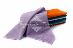 Полотенце махровое гладкокрашеное с греческим бордюром плотностью 380 гр/м2. Петля одинарная. Размер: 30х50 см. Состав: 100% хлопок. Производство: Узбекистан.