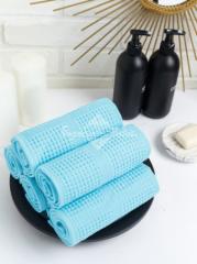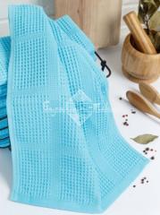 Полотенце вафельное для рук гладкокрашеное плотностью 300 гр/м2. Размер: 35х75 см. Рисунок образован чередой крупных и мелких ячеек. Состав: 100% хлопок. Производство: Узбекистан.