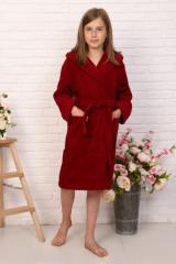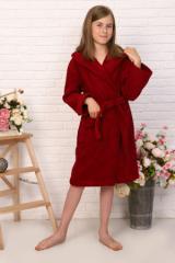 Наименование: Халат подростковый махровый "Элит" с капюшоном, цвет: 945-Бордовый, р. 146/152