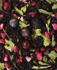 Описание: Купаж из классических черных индийских чаев с добавлением плодов шиповника, лепестков василька, вишни.