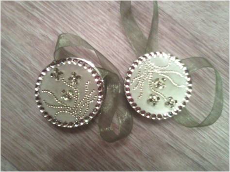 магниты прихватки выглядят все хорошо, но сделаны немного по разному, фаворитами в моем случае стали магниты, которые все из страз, смотрятся шикарно и магнит большой - в общем удобно, а вот магниты которые рядом лежат немного попроще - там магнитик маленький сзади -такой лучше на легкие шторки вешать, большие может не удержать.