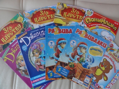 Сразу же рассортировала: для мужа - про историю, для родителей - про огород и еду, ребёнку - детские! Ну, и мне - женские! Очень понравились журналы Развивалки и Понимашки! Рекомендую! Много заданий для деток! Организатору огромнейшее спасибо!!! Участвую и дальше!!!