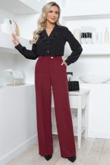 Описание: Брюки из костюмной ткани прямого силуэта  с высокой посадкой по талии и  заутюженными стрелками.По центру застежка гульфик-молния.Пояс притачной застегивающийся  на пуговицу.Для удобства в носке пояс по спинке собран на резину.В боковых швах расположены функциональные карманы с отрезным бочком.По поясу настрочены шлевки.