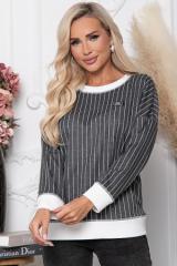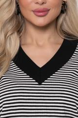 Описание: Джемпер из жаккардового трикотажного полотна в полоску свободного силуэта, дополнен  отделкой  вискозной,трикотажной белой рибаной.