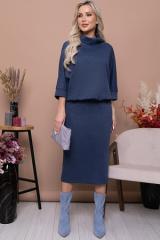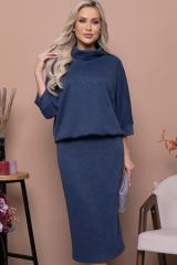 Описание: * Платье из мягкого эластичного трикотажного полотна.Лиф платья свободного силуэта,с цельнокроеными рукавами на манжете и воротником "хомут".Юбка прямая,слегка зауженная к низу,по спинке со шлицей.По талии платье зафиксировано на резину.Из верхней части платья формируется глубокий свободный напуск.