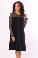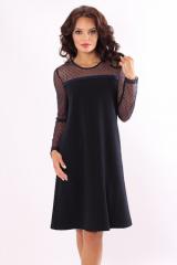 Описание: Платье трапецевидного силуэта из креп костюмной ткани.Кокетка и рукава из сетки