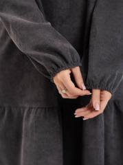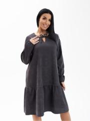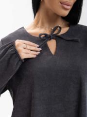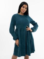 Платье женское, длиной чуть ниже уровня колена, выполненное из мягкого, приятного к телу материала - микровельвет. Модель с удлиненным втачным рукавом на манжете и округлой горловиной с завязками. Юбка - волан по низу изделия.