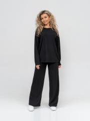 Молодежный костюм из трикотажной лапши. Толстовка "oversize" со спущенной линией плеча, длинным рукавом и О-образной горловиной. Широкие брюки на резинке с высокой посадкой.