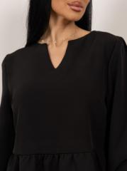 Женское платье из легкой ткани, свободного силуэта с воланом по низу изделия, длинным рукавом, округлой горловиной с завязками. Наше платье отлично будет смотреться как с кедами и сумкой кросс-боди, так и с туфлями на каблуке и широким ремнем.
