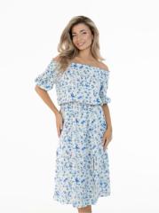 Платье женское с резинкой по горловине и талии, рукав фонарик, юбка с высоким разрезом по ноге, длиной миди. Женское платье из штапеля незаменимо в летнее, весеннее и осеннее время года. Такая модель смотрится прекрасно на любой фигуре, скрывает недостатки и подчеркивая талию. Платье легко комбинируется с любой другой одеждой: косухой, джинсовкой, тренчем.