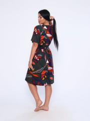 Халат женский из 100% хлопка, полуприлегающего силуэта длиной чуть выше уровня колена. Халат выполнен из яркой ткани, с застежкой на молнию. На полочке присутствуют накладные карманы с отделкой в верхней части. Вырез горловины V-образный, обработанный окантовкой. Идеально подойдет для дома, в нашем халате вы будете чувствовать себя комфортно пока занимаетесь домашними делами.