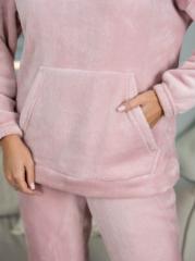 Женский халат из трикотажного полотна - велюр, прямой силуэтной формы, с О-образной горловиной. Полочка с прорезными карманами, с застёжкой на молнии. Рукав втачной базового покроя длиной 3/4, низ рукава обработан манжетой. Халат отлично подойдет на прохладную погоду.
