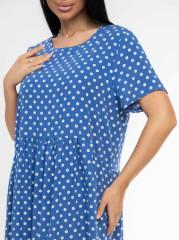 Ночная сорочка из хлопкового кашкорсе с набивыным рисунком, О-образной горловиной украшенной тонким кружевом в цвет основы ткани, коротким втачным рукавом, длиной до колена. Низ рукава и подол обработаны роликовым швом, нитки подобраны в цвет основы ткани.