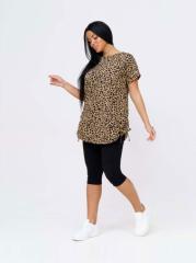 Костюм женский свободного силуэта, футболка и шорты. Футболка с коротким спущенным рукавом и округлой горловиной. Шорты с поясом на резинке.Яркий современный рисунок ткани в стиле - варенка. Легкий, удобный костюм из натурального хлопка, на каждый день.