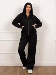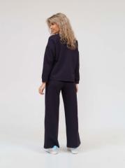 Женский костюм с брюками палаццо из фактурной ткани. Толстовка на молнии с рельефами, декоративной отстрочкой, карманами в рельефах и рукавом реглан. Брюки со стрелками, на поясе с несколькими отстрочками и карманами в боковых швах.