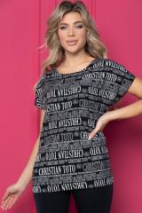 Стильная и необычная футболка с надписями прекрасно дополнит ваш повседневный образ. Рукав укороченный, со спущенным плечевым швом. Отлично будет смотреться как с джинсами, так и с укороченными брюками, шортами, короткими или длинными юбками.