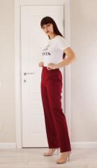 Описание: Артикул: 323213 Брюки классического кроя со стрелками без молнии в поясе эластичная лента 4 см.Высокая посадка.Очень удобны и практичны.Длина по боковому шву 104 см , по внутреннему 82 см, ширина внизу 20 см.(Замеры соответствуют 48 размеру). Цвет спелой вишни. Состав ткани: Лен 70%, Полиэстер 30%. Размеры: Количество: 48: 50: 52: 54: 56: Купить линейку