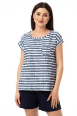 Наименование: Артикул: 7.837.2 Цена: 405 руб. Описание: Женский джемпер со спущенным плечом. Вырез горловины-лодочка. Спинка разрезная, фиксируется пуговицами. На полочке карман. Проймы дополнены манжетами с отворотом. Состав: хлопок 100% Полотно: кулирка Стандарт: ГОСТ Р 31409-2009 Цвет: белый/синий