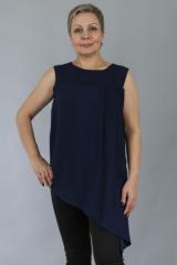 Наименование: Артикул: 7.1239 Цена: 300 руб. Описание: Женский блузон без рукавов, асимметричного кроя. Модель имеет округлую горловину,отрезную кокетку и двойную полочку со складками. Хорошо сочетается с юбками, брюками. Подойдет как для повседневной носки, так и для особых случаев. Состав: вискоза 100% Полотно: штапель Стандарт: ГОСТ Р 31409-2009 Цвет: черный
