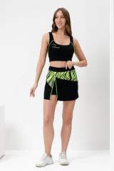 Наименование:39609 Костюм 67075 Цена: 300 руб. Описание: Костюм женский спортивный состоит из укороченного топа и юбки - шорт, с принтом и отделкой из яркого канта. Подходит для активного отдыха и занятий спортом. Очень удобен для езды на велосипеде.