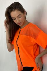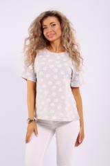 Наименование:15113 Футболка 8041 Цена: 100 руб. Описание: Футболка полуприлегающего силуэта, средней длины, с округлой горловиной. Рукав цельнокроеный, короткий, на манжете с отворотом. Полочка украшена эффектной печатью с пайетками