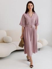 Платье-рубашка нежного зефирно-розового цвета выполнено из плотного лиоцелла. Лиоцелл это более дорогой и экологичный вариант вискозы, очень прочный и шелковистый. Ткань отличается от регулярной коллекции из лиоцелла - она содержит еще больше лиоцелла (92%), благодаря чему имеет более нежную шелковистую фактуру. Свободное платье трапеция будет идеальным выбором для весны и лета. Отложной воротник добавляет классический акцент, широкий пояс с металлической пряжкой подчеркивает талию, делая силуэт выразительным и женственным. Платье с широким рукавом средней длины смотрится современно, карманы и пуговицы добавляют практичности. Платье А-силуэта идеально сядет и на большие размеры, скроет возможные недостатки и подчеркнет достоинства фигуры за счет элегантного облегания талии и расклешенной юбки. На высокий рост платье будет длины миди, а на низкий рост - длина макси. Такое красивое и комфортное платье подойдет для повседневных образов, для стилизации в стиле сафари или casual, а так же для торжественных мероприятий.