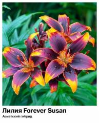 Наименование:5164 Лилия Forever Susan (Азиатский гибрид) Цена: 94 руб. Описание: 94 ? за шт / в уп. 5 шт Цвет: Черный с оранжевым Группа растения: Лилии ланцетолистные [тигровые] (Lilium Lancifolium) Высота растения: 90-100 cм Категория: Лилии (Луковицы) Размер посадочного материала: 12/14 Количество в упаковке: 5 шт Страна происхождения: Голландия Глубина посадки: 15 cм Расстояние посадки: 20 см Требования к свету (световой режим): Солнце Цвет листьев: Зеленые Влажность почвы: Умеренно влажная Условия полива: Умеренный Зона морозостойкости: Зона 3-4 Подходит на срезку: Да Период цветения старт: Июнь Период цветения конец: Август Диаметр цветка/соцветия: 10-15 см Количество: 5 шт Цвет: Черный с оранжевым Группа растения: Лилии ланцетолистные [тигровые] (Lilium Lancifolium) Высота растения: 90-100 cм Категория: Лилии (Луковицы) Размер посадочного материала: 12/14 Количество в упаковке: 5 шт Страна происхождения: Голландия Глубина посадки: 15 cм Расстояние посадки: 20 см Требования к свету (световой режим): Солнце Цвет листьев: Зеленые Влажность почвы: Умеренно влажная Условия полива: Умеренный Зона морозостойкости: Зона 3-4 Подходит на срезку: Да Период цветения старт: Июнь Период цветения конец: Август Диаметр цветка/соцветия: 10-15 см