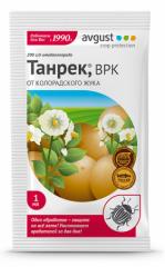Наименование:Танрек от колорадского жука 1 мл (Август) Цена: 16 руб. Описание: Инсектицид для защиты картофеля от колорадского жука Состав (Действующие вещества): 200 г/л имидаклоприда. Культуры и вредители: картофель:-колорадский жук Скорость воздействия: через несколько часов после обработки Период защитного действия: не менее 14 суток Срок ожидания(кратность обработок): 20(1) Способы применения: опрыскивание в период вегетации Класс опасности: 3 Назначение (насекомые): От колорадского жука Производитель: Август Фасовка: 1 мл ШтрихКод: 4606696000070 Количество в упаковке: 200 Действующее вещество: имидаклоприд Вес упаковки: 2кг
