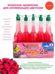 Наименование:Розовое удобрение (для активации цветения) (цена за упаковку — 10 бутыльков) Цена: 300 руб. Описание: Цвет розовый (для активизации цветения): цикламен, фиалка, фуксия, стрептокарпус, примула, бегония, цинерария, глоксиния, герань. Основные ингредиенты: азот, фосфор, калий, магний, биоактивные ферменты, витамины B · C, кислоты и др. активизирующее бутонизацию и цветение Розовое – с микроэлементами, биоактивными веществами, полезными бактериями, кислотами, витаминами: «придется по вкусу» всем пышно цветущим однолетникам и многолетникам.На что способны минеральные удобрения Fujima