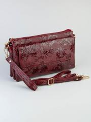 Стильная женская сумка с фактурным тиснением под цветы. Имеет плечевой ремень (съёмный), который регулируется по длине. На передней части сумки карман с клапаном на магните. Внутри три основных отделения, сзади сумки наружный карман.