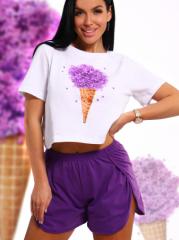 Замеры и вес изделий могут незначительно отличаться Производитель: IREN RENETTI Состав: хлопок 100% Модель: Пижама женская Сирень Тип товара: пижама с шортами Материал: кулирка пенье Бренд: IREN RENETTI Карман: без карманов Назначение: для дома Особенности: на резинке Отделка: с печатью Посадка: средняя посадка Рисунок: разное Рукав: короткий рукав Сезонность: лето Силуэт: свободный Стиль: домашний Воротник: без воротника Застежка: без застежки