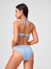 Наименование:Купальный костюм жен. Florena голубой Цена: 1000 руб. Описание: Раздельный купальник из эластичного фактурного полона, имитирующего плиссеровку, нежно голубого цвета. Мягка чашка без каркасов, с боковыми корсетными вставками и съемным вкладышем. Середина грудки украшена U-образной металлической вставкой, которая собирает материал и придает чашкам объем. Бретели съемные, завязываются на шее.На спинке металлическая застежка.Плавки со средней посадкой, на подкладке. По линии талии и вырезу ножек подгиб и плоский шов с резинкой.