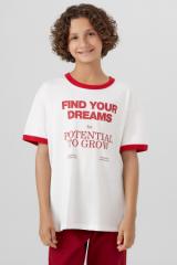 Описание: ID товара: 1135340 Состав: 100% Хлопок Сезон: Весна/Лето Длина: Средняя Фасон: Свободный Вырез горловины: Круглый Рисунок: Надпись Декоративные элементы: Принт Основная ткань: Хлопок Стиль: Повседневный Уход: Деликатная стирка при 30 градусах Особенности модели: Нет Фактура материала: Кулирное полотно Страна бренда: Беларусь Страна производства: Беларусь Джемпер для мальчиков свободного силуэта. Рукава втачные короткие. Горловина круглой формы. Горловина и низы рукава окантованы рибаной. Низ футболки обработан швом вподгибку на 2-ух игольной плоскошовной машине.
