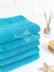 Полотенце махровое гладкокрашеное с бордюром "соты" плотностью 460 гр/м2. Петля ворса одинарная высокая. Размер: 50х90 см. Состав: 100% хлопок. Производство: Узбекистан.