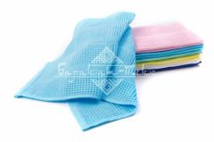 Полотенце вафельное для рук гладкокрашеное плотностью 300 гр/м2. Размер: 35х75 см. Рисунок образован чередой крупных и мелких ячеек. Состав: 100% хлопок. Производство: Узбекистан.