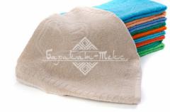 Полотенце махровое гладкокрашеное с петелькой и жаккардовым рисунком "ручки" плотностью 400 гр/м2. Петля ворса двойная. Размер: 34х60 см. Состав: 100% хлопок. Производство: Узбекистан.