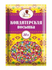 Наименование:807 Кондитерская посыпка (фигурная) ЭВ, 30 г Цена: 39.5 руб. Описание: Кондитерская посыпка фигурная Состав: сахар, крахмал кукурузный, мука пшеничная, мука рисовая, масло пальмовое, носители Е1422, Е460, декстроза, загустители Е1400, Е466, Е416, желатин, эмульгатор Е322, глазирователи Е903, Е904, красители пищевые Е102, Е110, Е120, Е122, Е124, Е129, Е133, Е151, Е171, Е172, ароматизатор «ванилин». Срок годности: 2 года Бренд: Эстетика Вкуса Страна: Россия Габариты: 14.5 x 10 x 0.5 см Масса брутто: 33 г Масса нетто: 30 г Вариант упаковки: Единичная Примечание: Изготовитель может вносить во внешний вид изделия изменения, которые не влияют на качество продукции. Название вариации: Кондитерская посыпка Фигурная