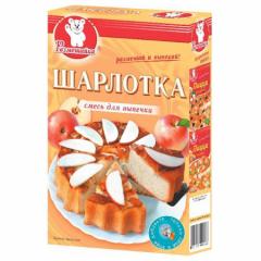 Описание: Легкий фруктовый пирог, пользующийся неизменной популярностью. сочетание пышного теста и сочной фруктово-ягодной прослойки радует глаз и вызывает желание насладиться его вкусом. Чаще всего шарлотку пекут с яблоками. их режут ломтиками и плотно укладывают на дно формы. Когда пирог готов, его аккуратно вытряхивают из формы на тарелку, чтобы фрукты оказались наверху. Для приготовления вам понадобятся 2 яйца, 6 стол. ложек воды и 2-3 яблока. Время выпечки 35 мин. Смесь для выпечки Состав: мука пшеничная в/с, крхмал кукурузный, сахар, какао - порошок, сода пищевая (Е500), регулятор кислотности: пирофосфат натрия (Е450), соль. Масса нетто: 300 г. Пищевая ценность 100 г. продукта: белки - 4,83 г; жиры - 1,5 г; углеводы - 80, 34 г Энергетическая ценность: 350,7 ккал (1467,33 кДж) Смесь для крема Состав: сахар, какао - порошок, растительный жир, молочный белок, эмульгатор (Е 472а), загуститель (модифицированный крахмал Е1412), ароматизатор идентичный натуральному шоколад. Масса нетто: 50 гр. Пищевая ценность 100 г. продукта: белки - 8,68 г; жиры - 44,33 г; углеводы - 37,94 г Энергетическая ценность: 584,35 ккал (2444,92 кДж)