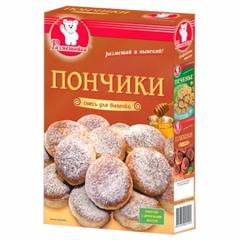 Описание: Дрожжевая сдоба в виде круглых шариков. Мы используем инстантные дрожжи, которые не нужно заранее разводить в жидкости. сами по себе пончики не очень сладкие, поэтому их посыпают сахарной пудрой или начиняют джемом, шоколадной пастой. Их можно выпекать в духовке, но гораздо вкуснее пончики, обжаренные во фритюре. корочка получается зажаристая, мякиш нежный, после надавливания быстро восстанавливается. очень эффектно под воздействием горячего жира пончики раздуваются и становятся абсолютно круглыми. В комплект входит пакетик с дрожжами. Для приготовления вам понадобятся 1 яйцо, 1/2 стакана воды или молока, 2 стол. ложки растительного масла. Смесь для выпечки Состав: мука пшеничная в/с, крхмал кукурузный, сахар, какао - порошок, сода пищевая (Е500), регулятор кислотности: пирофосфат натрия (Е450), соль. Масса нетто: 300 г. Пищевая ценность 100 г. продукта: белки - 4,83 г; жиры - 1,5 г; углеводы - 80, 34 г Энергетическая ценность: 350,7 ккал (1467,33 кДж) Смесь для крема Состав: сахар, какао - порошок, растительный жир, молочный белок, эмульгатор (Е 472а), загуститель (модифицированный крахмал Е1412), ароматизатор идентичный натуральному шоколад. Масса нетто: 50 гр. Пищевая ценность 100 г. продукта: белки - 8,68 г; жиры - 44,33 г; углеводы - 37,94 г Энергетическая ценность: 584,35 ккал (2444,92 кДж)