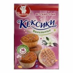 Описание: 16 ванильных кексиков. Формочки внутри. Необходимо для выпечки: 1 яйцо среднего размера, 40-50г сливочного масла или маргарина. Время выпечки: около 15 минут. В тесто можно добавить любимые ягоды или фрукты Состав: мука пшеничная в/с, сахар, крахмал кукурузный, сода пищевая (Е500), регулятор кислотности (пирофосфат натрия (Е450)), соль, ванилин
