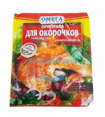 Наименование:Омега Приправа 150гр дойпак. Для Окорочков (кор*40) Цена: 87.66 руб. Описание: Способ применения: добавить по вкусу во время приготовления курицы.