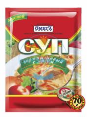 Состав: зелень укропа, петрушки, перец черный, чеснок, лук, паприка, мясной бульон, томат, соль йодированная.