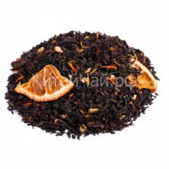 Описание: Индийского чай Ассам с добавлением цедры и долек апельсина, украшенный лепестками изысканного сафлора.