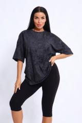 Удобный хлопковый костюм для дома и дачи. Футболка не стесняет движений, на полочке милый принт. Брючки с завышенной талией с кармашками длиной 3/4. Прекрасный комплект для каждодневного использования.